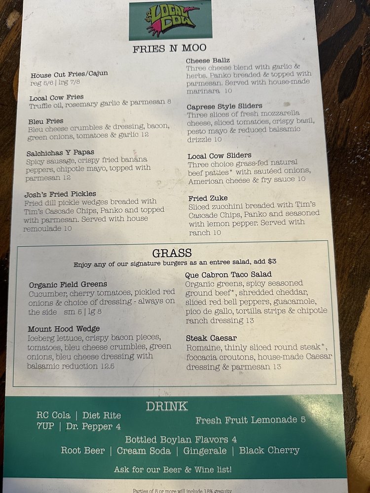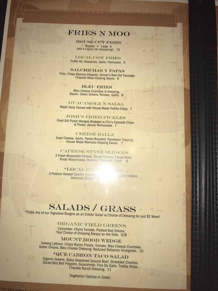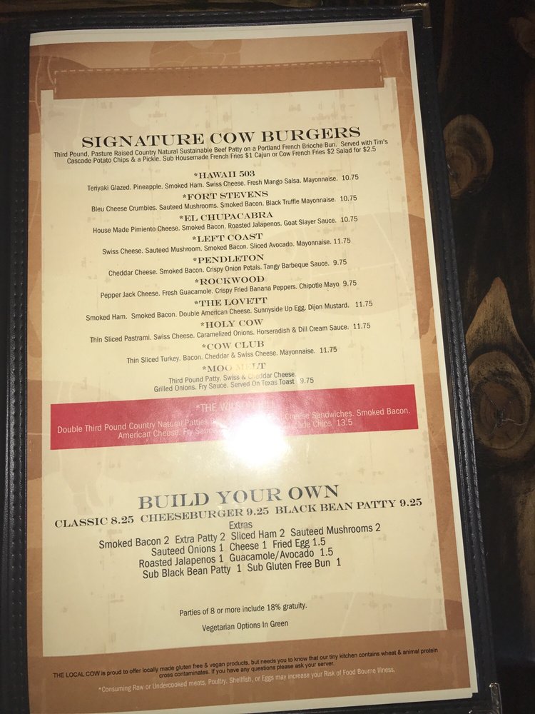 The Local Cow, located in Gresham, Oregon, offers a mouthwatering selection of burgers with unique twists. Their signature Cow Burgers, such as the El Chupacabra with pimento cheese and jalapeños, or the Ft. Stevens with blue cheese and truffle aioli, are a must-try. The menu also includes delicious appetizers like Cheese Ballz and innovative salads like the Mount Hood Wedge with blue cheese dressing and balsamic reduction. Customers rave about the juicy and flavorful burgers, the quick and friendly service, and the cozy ambiance of this burger joint. If you're looking for a creative and delicious burger experience, definitely give The Local Cow a visit and indulge in their delectable offerings.